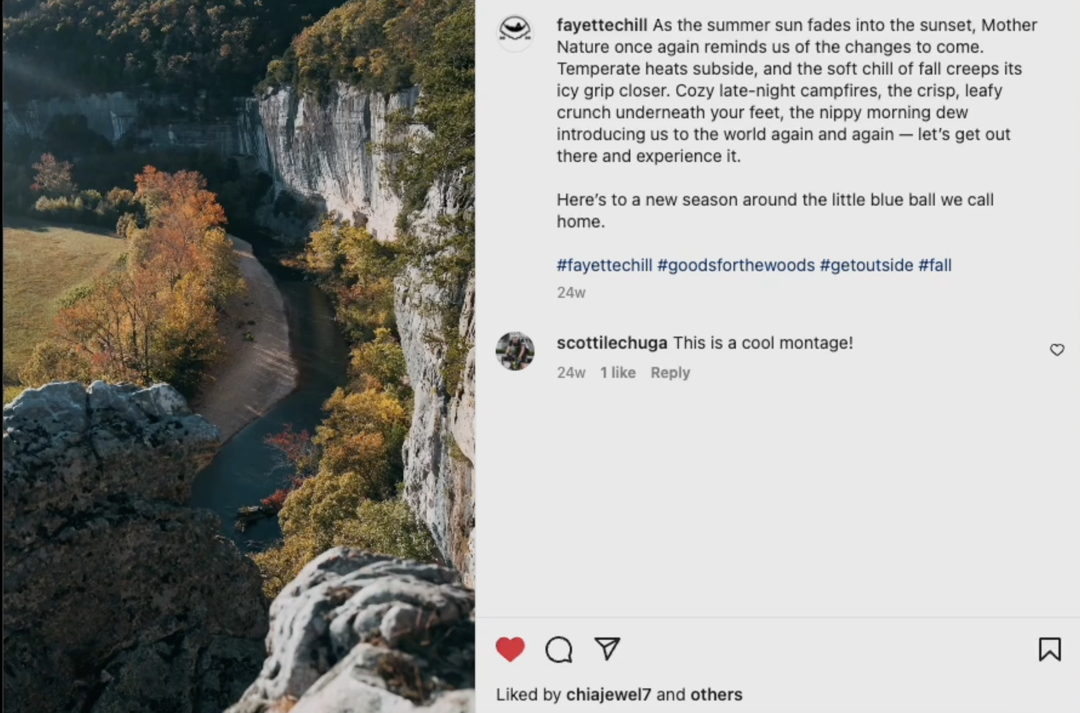 Fayettechill is a brand under The Hedgehog Company. I was tasked with writing poetic, engaging social copy that appealed to emotional connections consumers could resonate with.